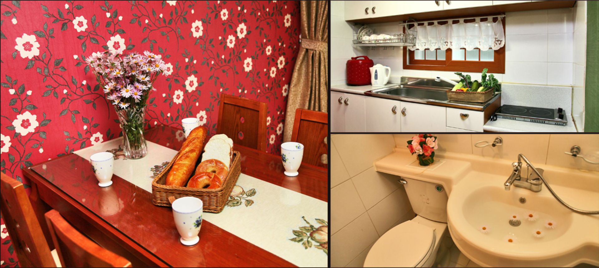 • 시설 : TV, 주방,냉장고,에어컨,전기밥솥,핫플레이트,주방집기,침대,화장실,샤워시설,욕실용품,화장대,커피포트,벽난로